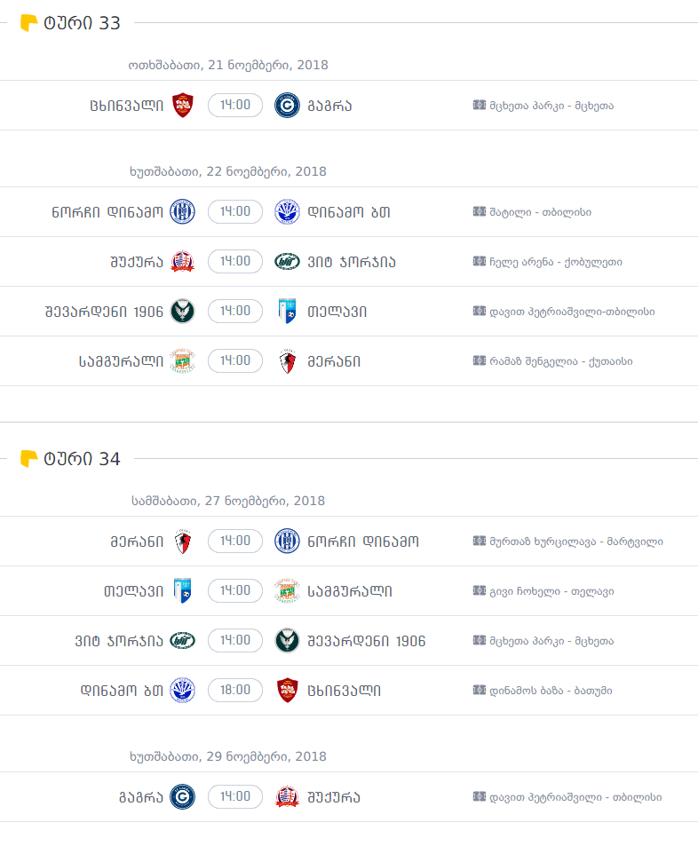 “შევარდენი 1906” 0:3 “თელავი”მატჩის ფოტორეპორტაჟ telavi2020-09-07T21:57:14+04:0024 ნოემბერი, 2018|FacebookTwitterLinkedInWhatsAppPinterestEmail მსგავსი სიახლეები XV ტური: “თელავი” 0:2 “დინამო” (ბთ) XV ტური: “თელავი” 0:2 “დინამო” (ბთ) ხაბულიანი XIV ტურის სიმბოლურში ხაბულიანი XIV ტურის სიმბოლურში XIV ტური: “ტორპედო” 1:1 “თელავი” XIV ტური: “ტორპედო” 1:1 “თელავი” თევზაძე და გოშთელიანი XIII ტურის სიმბოლურში თევზაძე და გოშთელიანი XIII ტურის სიმბოლურში XIII ტური: “თელავი” 1:0 “გაგრა” XIII ტური: “თელავი” 1:0 “გაგრა” XII ტური: “სამგურალი” 2:1 “თელავი” XII ტური: “სამგურალი” 2:1 “თელავი”